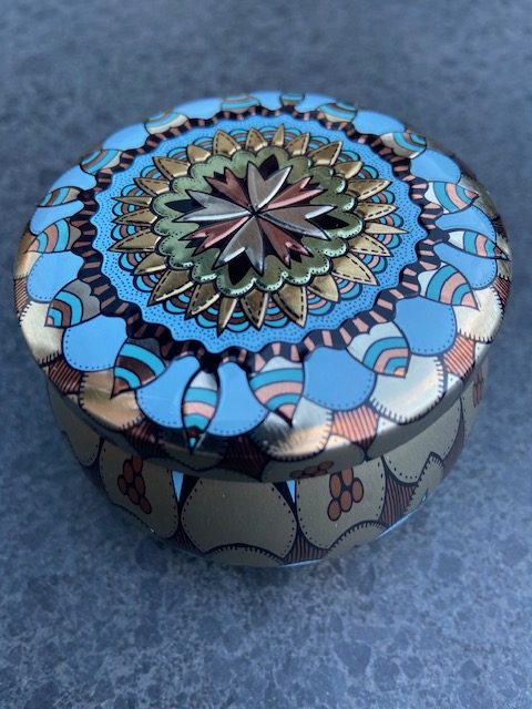 Groene thee in een speciaal blikje met mooi design.
